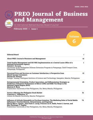 Entrepreneurial Orientation, Product Innovation, and Differentiation Strategies as Predictors of Business Performance of Micro Coffee and Milk Tea Shops in the National Capital Region (NCR)